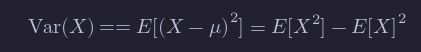 E[X2]−E[X]2=2−1=1E[X^2] - E[X]^2 = 2 - 1 = 1.