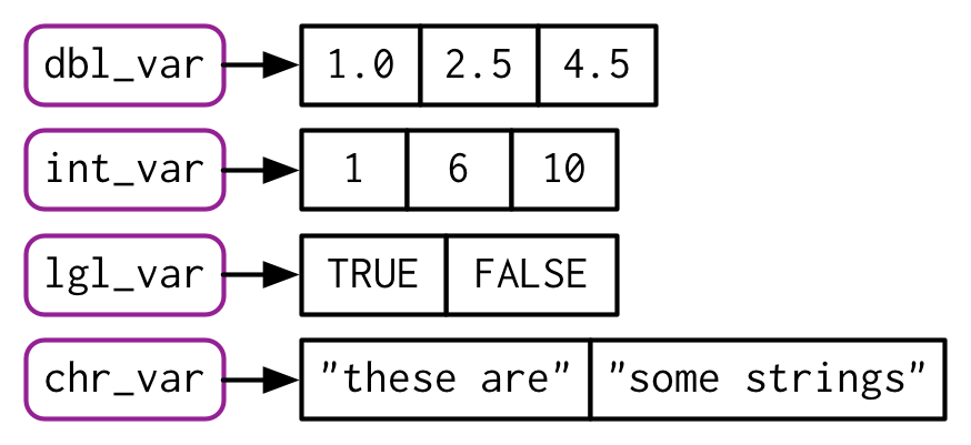 | lgl | int | dbl | chr | list | |